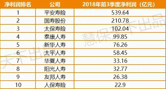 从具体的公司来看,净利润排名前十大险企与保费规模前十大险企差异明显。2018年前三季度,平安寿险净利润达539.64亿元,排名第一,且同比增速高达51.16%;而保费规模蝉联第一的“老大哥”国寿股份则以210.78亿元位居第二,且同比增速为-19.00%;同时,新华人寿,也凭借76.26亿元跻身利润榜前五,且同比增速达55.63%,显示出较好的盈利能力。