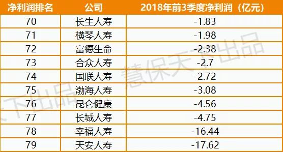 与此同时,仅3家险企由去年同期的盈利转为今年的亏损,具体为合众人寿、英大人寿、君龙人寿,其中,合众人寿净利润由去年同期的1.51亿元跌至今年的-2.70亿元,行业排名倒数第七。