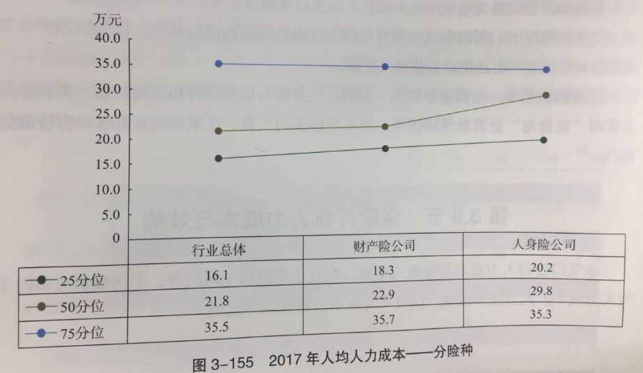 《报告》显示,2017年保险行业人均人力成本较去年同期有所下降,其中,2017年50分位人均人力成本为21.8万元,低于2016年的25.8万元。