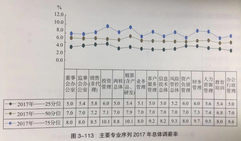 从具体的薪酬及福利安排来看,2017年全体员工的调薪比例为7%,相比2016年的8%有所下降。从不同岗位的情况来看,投资管理、精算(含产品、研发)、财务管理、人力资源管理等岗位的调薪比例相对较高。