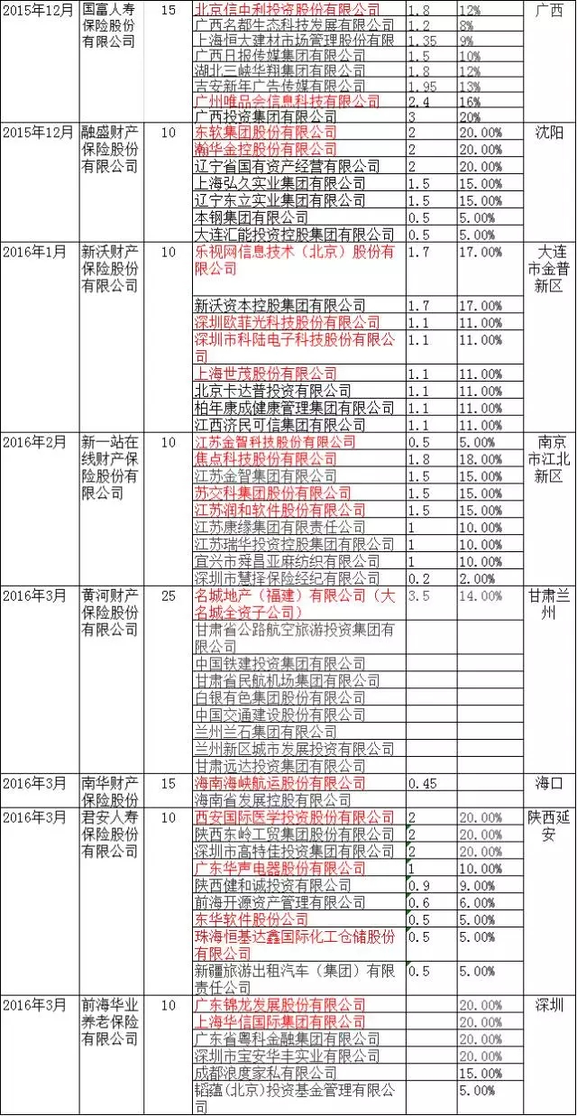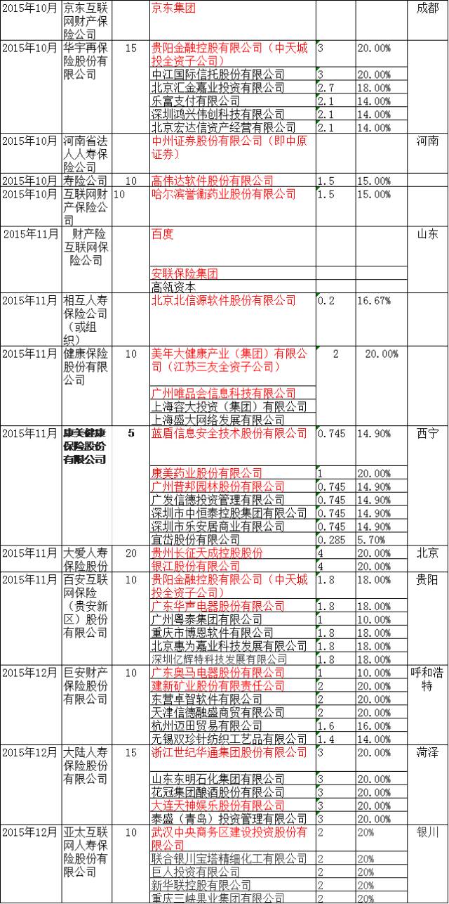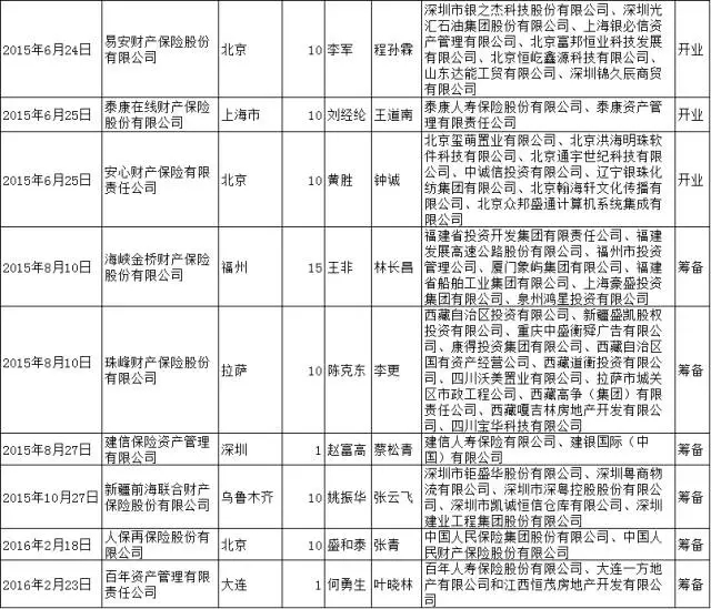 表1:2015年以来发起设立保险公司情况一览表(点击查看大图,红色为上市公司)