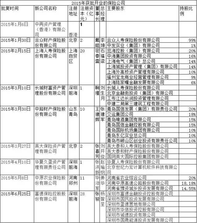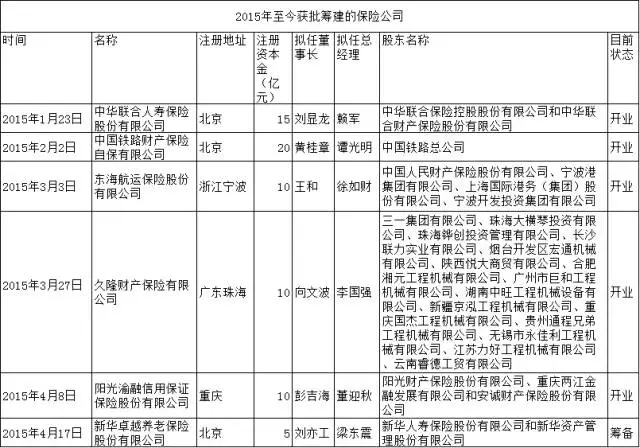表2:2015年至今获批筹建的保险公司(点击查看大图)