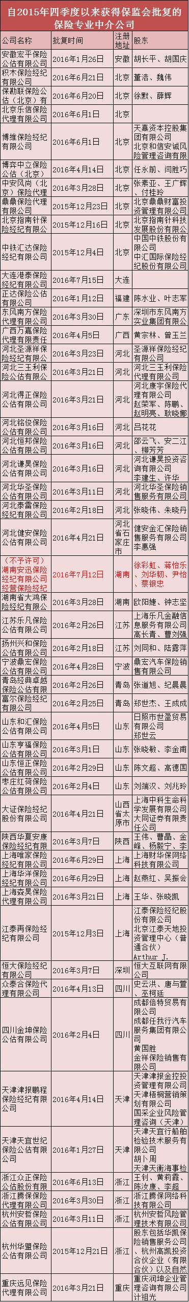 从保险公司在资本市场叱咤风云开始,保险牌照就变得越发炙手可热,连带着保险中介牌照的价码都一路水涨船高。自2015年四季度保险专业中介牌照的审批工作重新开闸以来,保监会的审批工作明显快于以往,但即便如此,面对各类社会资本对于保险专业中介牌照的疯狂追捧,这样的速度仍然远远满足不了需求,有知情人士介绍,无论是在保监会还是在一些保监局,均有数量可观的保险专业中介公司在等待批复。有业内人士分析,造成目前各类资本蜂拥而至、申请保险专业中介牌照的主要原因有以下几种:一是,保险专业中介机构审批关闸已久,积压多时的需求呈现出集中释放的状态。二是,保险业发展向好,各路资本看好,但保险牌照稀缺,于是借道保险专业中介公司布局保险业。且相对保险公司来说,保险专业中介公司轻资产特征明显,无需太大投入。三是,“大众创业、万众创新”的号召以及“互联网+”浪潮的双重鼓励之下,大量互联网保险创业平台公司涌现,在监管的缝隙中艰难求生,急于寻求一张保险专业中介牌照,以求光明正大的发展。四是一些互联网企业或者互联网理财平台正在积极寻求多元化发展,谋求金融全牌照,以便于为客户提供一揽子的理财产品,保险代理牌照以及保险经纪牌照自然必不可少。对于急于获取保险专业中介牌照的各类资本来说,保险会审批保险专业中介牌照都有哪些特点?或许从近期的批复结果中,就能看出一些门道。根据保监会官网显示的信息,从2015年四季度开始,截至到今日,保监会总共批复了50家保险专业中介公司的业务申请,其中,只有1家得到的是“不予许可”的结果,其余49家皆顺利过关。从最终的结果来看,注册地址选择很重要,公估牌照相对最容易获得,股东背景与实力也相当重要。从获批的49家公司的注册地址来看,不同地域之间差别巨大,东部经济发达地区获批的数量要远远多于中西部地区。具体而言,49家获批保险专业中介公司的注册地址分布在19个省市(包括青岛、大连、深圳、宁波4个计划单列市),其中,北京以及河北获批公司数量最多,各占9家;上海、浙江、山东次之,各获批4家;天津、江苏、四川、青岛各获批2家;重庆、湖南、宁波、大连、陕西、山西、广西、广东、安徽、福建、深圳11个省市各获批1家。公估公司数量明显多于代理公司以及经纪公司。经慧小保统计,49家获得许可的公司中,24家都是公估公司,其中又以河北省为最,在这段时间内,河北省总共获批9家保险专业中介公司,其中除两家是保险经纪公司外,其余7家都是公估公司。此外,保险大省——山东省(不含青岛),在此期间内获批了4家机构,也全部都是公估公司。有知情人士对慧小保透露,相对于保险代理公司以及保险经纪公司,保险公估公司更多是依靠自身的专业技能开展业务,各种风险都要小得多,因此在审批的时候更容易获得通过。从股东的背景来看,许多保险公估公司都是由专业中介公司发起设立的,河北的几家公估公司大多数都有保险专业中介的背景。例如,河北三玉利保险公估有限公司就是由河北三玉利保险代理有限公司投资设立的;河北得正保险公估有限公司是由河北康宇保险代理有限公司与几个自然人股东投资设立的;河北健安保险公估有限公司则是由健安金汇保险销售服务有限公司与自然人股东投资设立的。不只河北省,在其他省份也有类似情况,例如,宁波鼎宏保险公估有限公司就是由鼎宏汽车保险销售有限公司投资设立的。此外,江泰再保险经纪公司也是由保险专业中介投资设立的,其大股东正是在国内保险经纪领域占据重要地位的江泰保险经纪。正当保险业上下都在积极进行互联网金融风险专项整治工作的同时,有着明显P2P背景的积木保险经纪有限公司却获批成立。其股东为两个自然人,但都是积木盒子的重要创始人。据媒体报道,此前,积木盒子的母公司PINTEC(品钛)还相继拿到了企业征信牌照以及基金代销牌照,而据PINTEC集团CEO董骏透露,在保险经纪牌照落地后,PINTEC旗下的互联网保险经纪平台麦芬也将上线,麦芬首先布局于标准化程度和市场普及率较高的汽车保险市场。值得注意的是,同样有着P2P背景的浙江互联网金融公司投融长富,此前也曾公开表示自己已经获批全国性代理牌照,并决定就此设立“投保家”品牌,发展互联网保险。但目前保监会官网上,尚无该公司的信息。其实,有P2P平台背景的公司获批保险专业中介牌照并非首例,2011年,同样出身P2P的宜信财富,就已经拿到了保险代理牌照,成立了宜信博诚保险销售服务(北京)有限公司。有业内人士认为,在互联网金融危机爆发之前,获批保险中介牌照尚可理解,但在如今这样一种积极防范风险跨界传递的形势下,积木保险经纪还能够获批确实有些出人意料。在大量互联网保险创业平台公司苦于拿不到保险专业中介牌照时,另外一些互联网公司却已经大功告成,例如上海财华保网络科技有限公司,其已经获批“上海唯家保险经纪有限公司”,例如浙江腾保网络科技有限公司,其已经获批“浙江腾保保险代理有限公司”。有了牌照的互联网保险平台明显更容易受到资本的青睐,浙江腾保保险代理有限公司在今年3月底拿到批复后,5月就已经完成了千万人民币Pre—A轮融资。