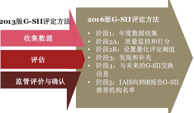 就具体的评定方法而言,原来是“三阶段法”,2016年更新版本则将定性定量相结合的评估方法进一步具体化,从原本的“三阶段法”转变成“五阶段法”,增加了监管的自由裁量权,同时也加强了与参评机构的沟通及信息披露的透明度。