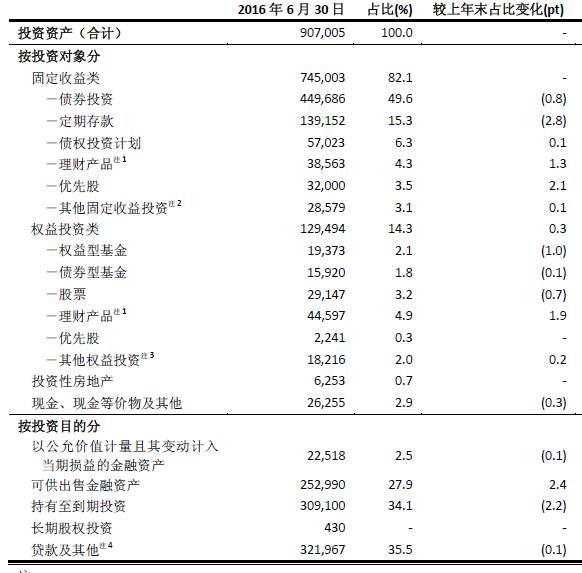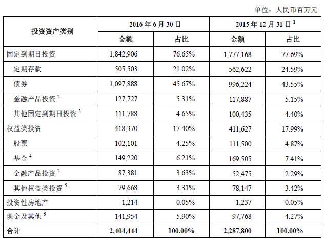 2016上半年中国人寿、中国平安、人保集团、中国太保的总投资收益率