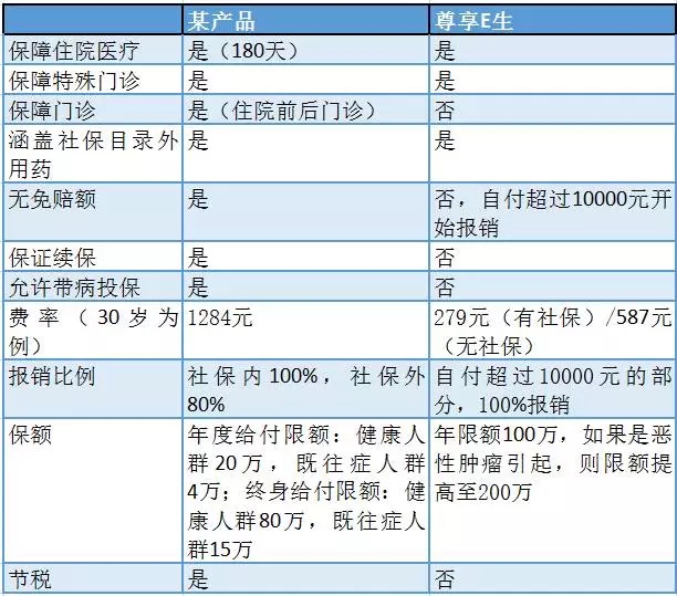 众安保险的尊享E生火了,最主要的原因之一就是费率低,而保额高,对于二三十岁的年轻人了来说,每年只要二三百元即可获得最高达200万的住院医疗以及特殊门诊保障,这确实很有诱惑力。但如果告诉你有一款产品比尊享E生还牛X,你信不信? 先卖个关子,看一看这款产品到底牛在哪里。 对比尊享E生
