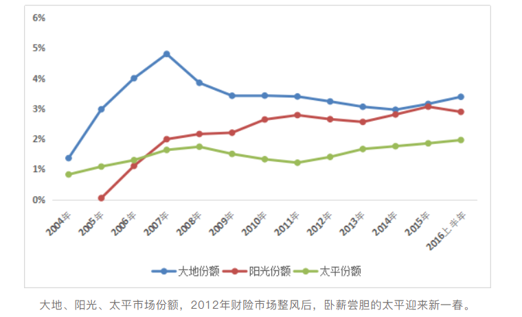 生具王霸之气,历史悠久;又有贵胄加身,积淀深厚。奈何悠悠岁月,英雄气短,时势弄人。中国太平,一个曾经骄傲的民族保险企业,有着辉煌的历史,偏居域外多年荣归故里。但太平财险目前却是闪耀不如过往,远不若同期兄弟太平人寿风光,泯然众人。或许是见惯了域外市场之成熟,太平财险初遇国内市场之血雨腥风、杀伐不断颇为畏缩,未能紧跟老三家之后,稳固江湖大派地位。幸得红色根基与保险强人造就本世纪初之先发优势,依旧位居十大财险之列。近年来更是机遇连连、红光更甚,一主内、一攘外两位大佬之调教下,颇有第二春之感。太平财险之历史悠久可追溯至解放前,1930年开辟的太平水火保险,以道家太极图为商标,大有成绩后方才设立寿险、意外险等公司,一度接手并购多家同时代保险公司,羽翼广张业及天下,更进驻香港东南亚等地,创业九年已是全国最大的华商保险公司之一,一时间名震江湖,成开宗立派的一方宗师。太平水火保险与太平人寿商标,前者直接套用道家太极图,后者则在其基础上加以改动,巧妙地嵌入了平字图案,足显传统文化之造诣。新中国开天辟地,保险江湖随之风云变动,太平亦面临合并、迁京、停办等命运,无奈转向国际市场,一别国内江湖四十余载,归去来兮已然天地换新颜。太平财险的回归还需等待一位强人——不爱茅台爱喝老白干的杨超,这位叱咤资本市场的大佬一手造就了太平系的回归。2001年太平保险恢复在大陆开展业务,2002年开始紧锣密鼓招兵买马,以平均每年4家的速度铺网点设机构。时至2009年底更名“太平财产保险有限公司”时,已完成全国28家分公司、400余家三、四级机构开设。与大多数新设保险公司不同的是,太平财险有着深厚的保险经营底蕴,一开始就关注并践行集中管控,这也为后来位居十大财险公司之列奠定了基础。可惜的是,那时是属于寿险的时代,资本市场之风起云涌皆取决于寿险风华。前有人保平安等巨头策马控弦指点江山,后有一众新兴主体追波逐浪虎视眈眈,虽然太平财险有着纯正的民族保险血统加持,一身保险经营内功也颇见火候,但那时的江湖信奉的是粗野的肉搏械斗,新侠客们无不用最功利的手腕来攫取领地。高昂的初始成本,大肆铺设机构、份额直线上升的背后是巨大的费用投入和红色的财务数字。从综合成本率来看,2005年之前太平财险一直在120%以上,之后五年虽有所好转,但一直未能实现承保盈利。以至于当年金光熠熠的太平财险在第八把交椅上多少显得黯淡,不符合其悠久底蕴。2016年上半年财险份额,太平位居第八,其规模与后起之秀阳光相比差了将近一半。