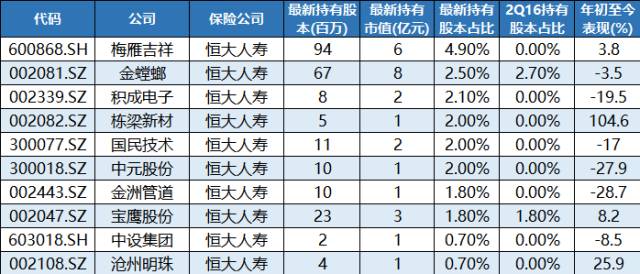 网传恒大人寿最新持股情况: