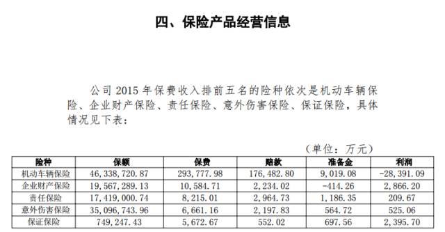查看该公司历年年报显示,2012年、2013年、2014年保证保险的保费收入均未能进入保费你收入排名前五的产品之列,2015年,保证保险则以5672.67万元的保费收入成为浙商保险最畅销的产品之一,年报显示,该险种为该公司带来的承保利润达到了2395.7万元。而该年度该公司的净利润不过5165.67万元。