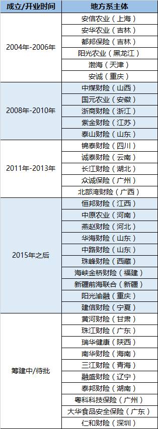地方系财险始祖当属西域霸主中华联合,不过其早已升格为全国性公司。2004年安信和安华两家专业农险公司拉开地方系帷幕,而以2009年前后紫金、浙商开业为标志,地方系进入批量生产期,正式在财险江湖形成气候。