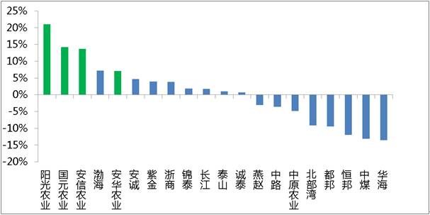 部分地方系主体2015年净资产收益率,四家专业农险公司画出了漂亮的阳线
