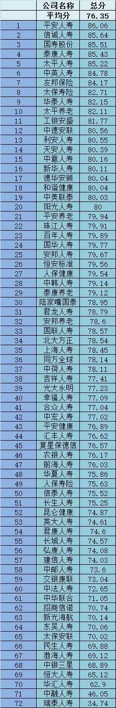 值得注意的是,在得分较低的险企中,仍存在较多的外资险企,例如财产险方面,史带财险、东京海上、爱和谊、中航安盟、日本兴亚、美亚财险、乐爱金财险、现代财险以及中意财险等得分均低于70分。在寿险方面,得分低于70分的公司只有7家公司,其中也包括中银三星以及瑞泰人寿两家合资险企。