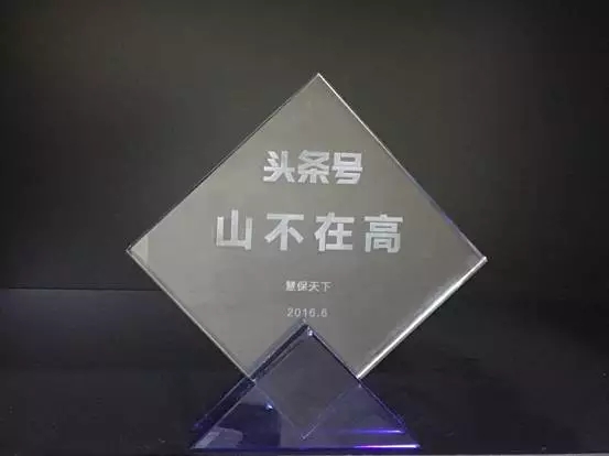 20162016年6月,因为在保险领域深度原创方面的突出表现,今日头条授予『慧保天下』“山不在高”奖。