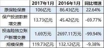 1月是观察险企年度业绩走势的一个良好时机,截至目前,已经有数家上市险企发布2017年1月的保费数据,且颇具代表性,通过这些公司的表现,或许就能发掘出2017年保险行业的一些共性。