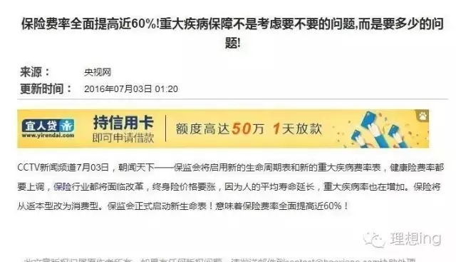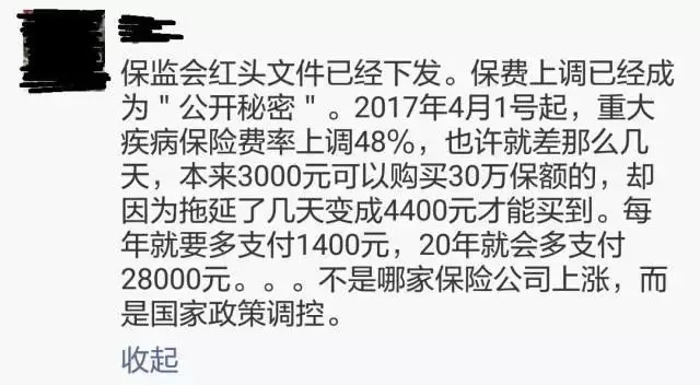 谣言:保监会将启用第三套生命周期表和新的重大疾病费率表,由于寿命延长,重大疾病发病率提升……保险费率全面提高近60%。