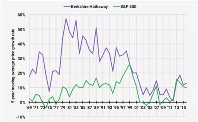 伯克希尔股价和标准普尔500指数增长率,近几年二者已经非常接近