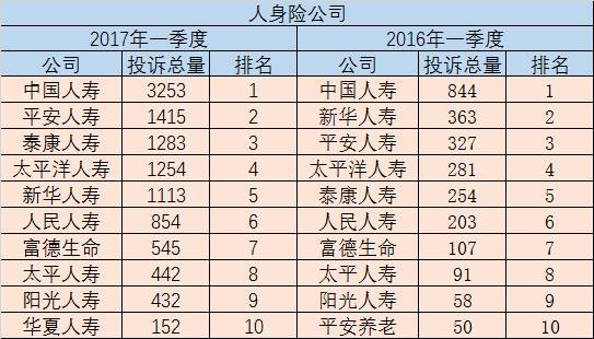 根据公布数据,对比2016年一季度投诉情况。投诉总量前10的人身险公司中,除平安养老退出前十,其他9家公司仅排名发生了细微变化。而华夏人寿以152件投诉量挤入前十。