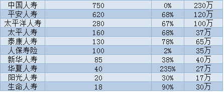 人力方面亦是如此,国寿营销员数量达到230万人,平安达到120万人、太保达到100万人,老三家合计450人,老七家人力合计630万人,占比八成。