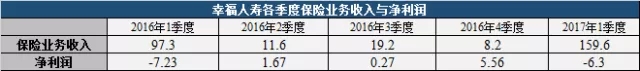 2017年仅一季度的保费收入就超过了2016年全年保费收入,却再度亏损6.3亿元。