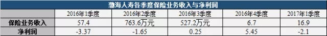 渤海人寿2016年一季度保费收入占到了全年保费收入的85%,亏损额也为全年最多。第四季度不到7亿的保费却实现了约5.5亿的净利润,使公司扭亏为盈。