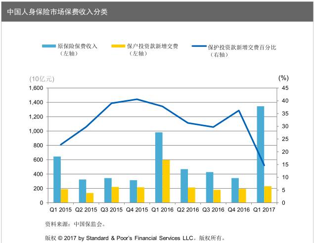 同时,标普还预计,2017 年保费增速大概在15%到20%间。
