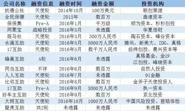 网上已经见到的类似组织很多,朋友给了我了一个单子,罗列了网上众多的“类保险”互助组织,例如,“抗癌公社”、“夸克联盟”、“全民保镖”、“保保集”、“同聚宝”、“同当互助”、“人人互助”、“17互助”、“大树互助”、“壁虎互助”等等,有15家之多。有的融资额已有3000多万元,这些组织总计融资超过2亿元。