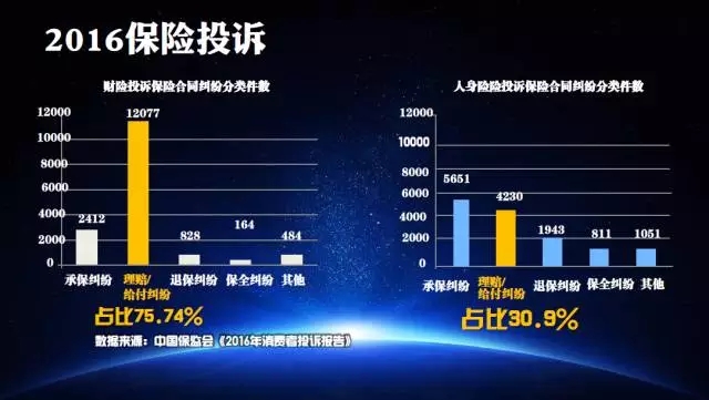 保监会发布的《2016保险消费者投诉报告》显示,理赔、给付纠纷占到了财产险保险合同纠纷投诉总量的75.74%,在人身险保险合同纠纷投诉总量中的占比也达到了30.9%。
