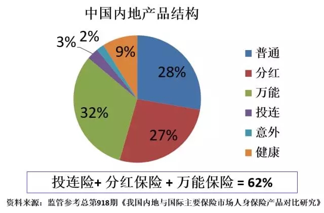 反观中国寿险市场,投资型寿险产品占比超过60%,普通寿险、健康险、意外险等保障类产品占比仅有1/3左右。