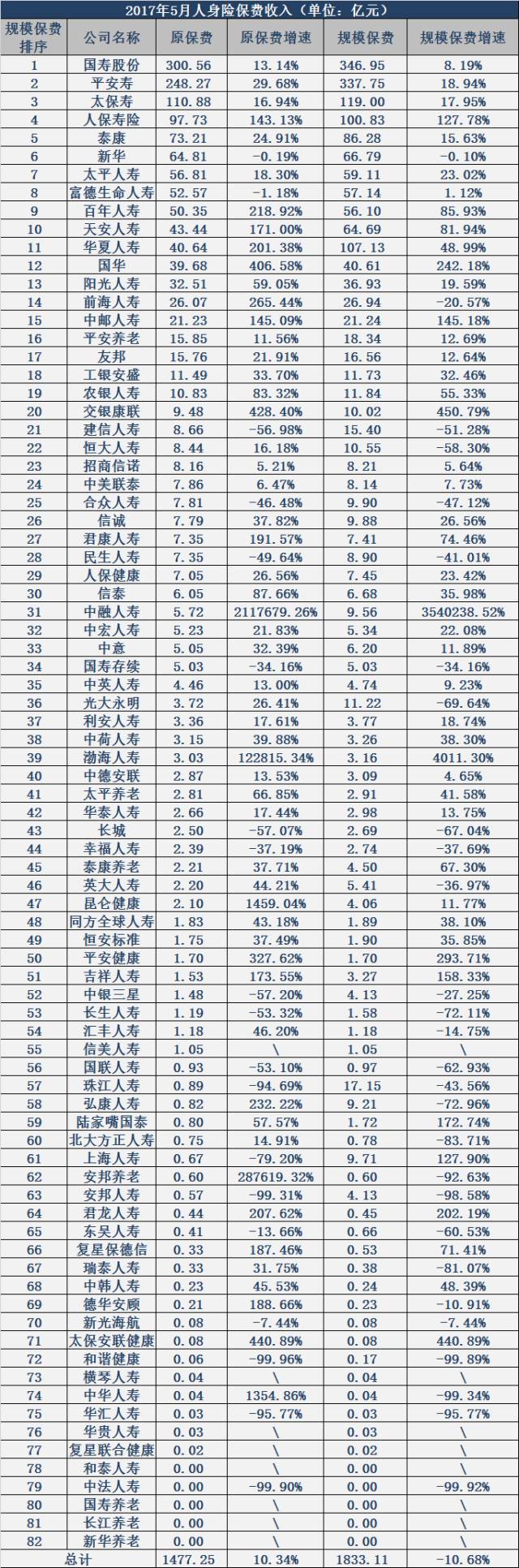 5月单月,82家寿险公司中,45家险企实现了规模保费的正增长,同比4月单月多8家。其中,实现100%以上增幅的达到12家。