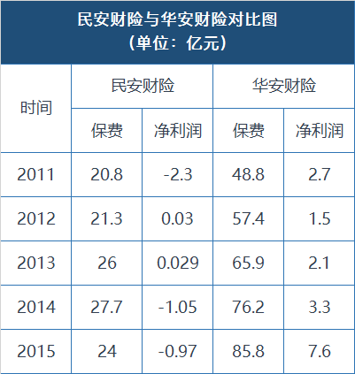 民安财险:多年来保费规模始终徘徊在20亿元左右,2011年即达到20.7亿元,2015年仍未超过25亿元。受制于可以忽略不计的市场份额,民安之利润表现更是难堪。