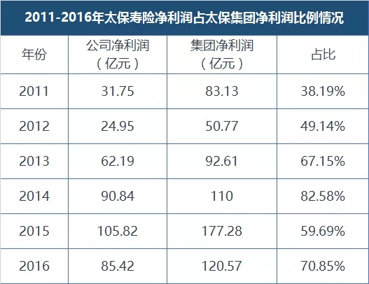 2014年、2015年、2016年,太保寿险三年合计净利润近300亿元,同期太保集团三年净利润407亿元,占比近七成。2014年,这一比例高达83%。而在转型初期的2011年、2012年,太保寿险净利润仅有32亿元、25亿元。
