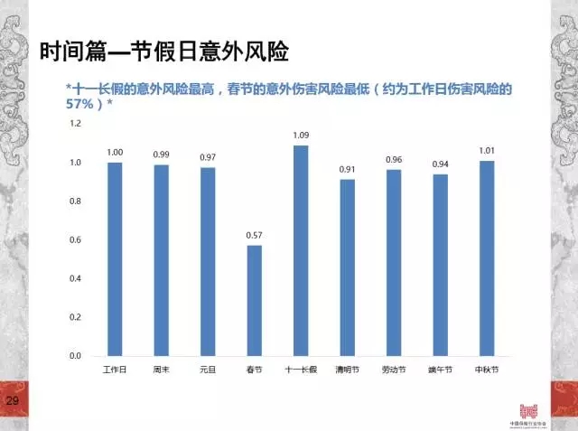 从节假日意外风险来看,还是待在家里相对比较安全,十一长假全年意外风险最高。长假即将临近,外出游玩还需多加注意。