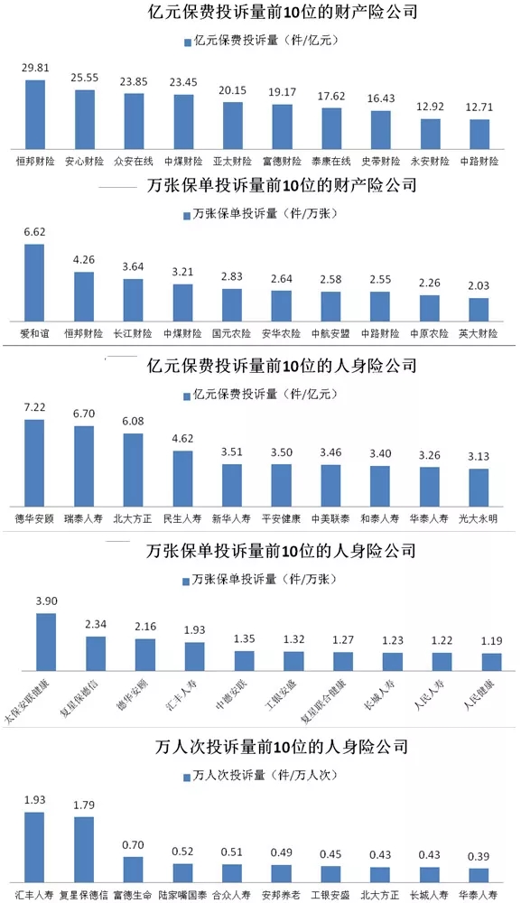 国寿、人保等大中型公司投诉量大,中小公司亿元保费、万张保单投诉量居前