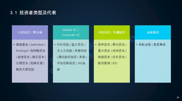 根据PBCSF统计,截至2017年底,公开信息记载的参与保险科技私募股权投资的投资人/投资机构共有212家,PBCSF选出了一些代表并进行了分类。