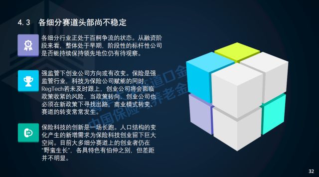 在PBCSF看来,从融资阶段来看,目前保险科技整体仍处于早期,各领域领先企业尚不稳定,此外还面临着监管风向问题。