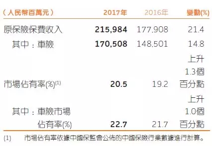 财产险方面,2017年,实现保费收入2159.84亿元,同比增长21.4%以上。