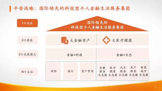 中国平安长期以来一直在理念上引领行业,从声称竞争对手是科技公司,到提出科技驱动转型,再到今年又提出“金融+生态”,并在年报中详细介绍了目前已经建立的“五大生态”。“五大生态”听着耳熟,没错,在3月20日的文章中,刚刚介绍了众安在线的“五大生态”——这年头,做企业不提“生态”好像就已经OUT了。