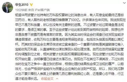 前万科独董华生:宝能涉虚假增资,收购万科违规使用险资