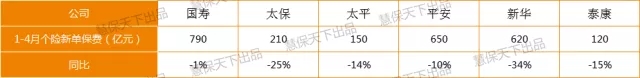 前4月,老六家个险新单保费合计近2000亿元,占当期国内寿险业全部个险新单保费的比例达到87%,所以某种程度上,老六家寿险公司的个险新单保费走势就代表了国内个险渠道整体的发展趋势。从个险行业看整体,2018年前4月个险新单保费近2300亿元,同比下降13%。