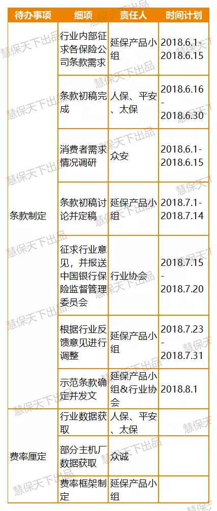 根据中保协拟定的计划,汽车延保保险条款项目将从6月开始运作,到8月初完成制定,并公开发布。