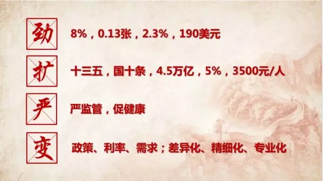 变:市场环境正在悄然改变,包括政策、利率、需求等都在改变。在这种情况下,差异化、精细化以及专业化将成为保险行业未来发展的方向所在。