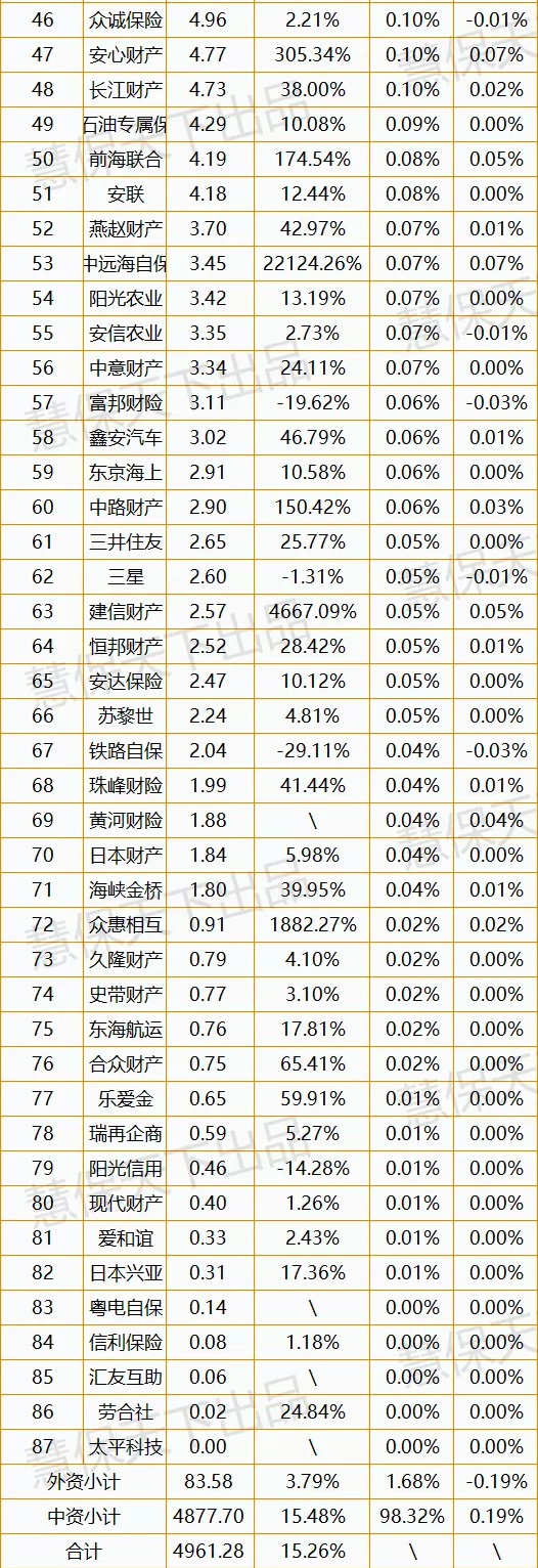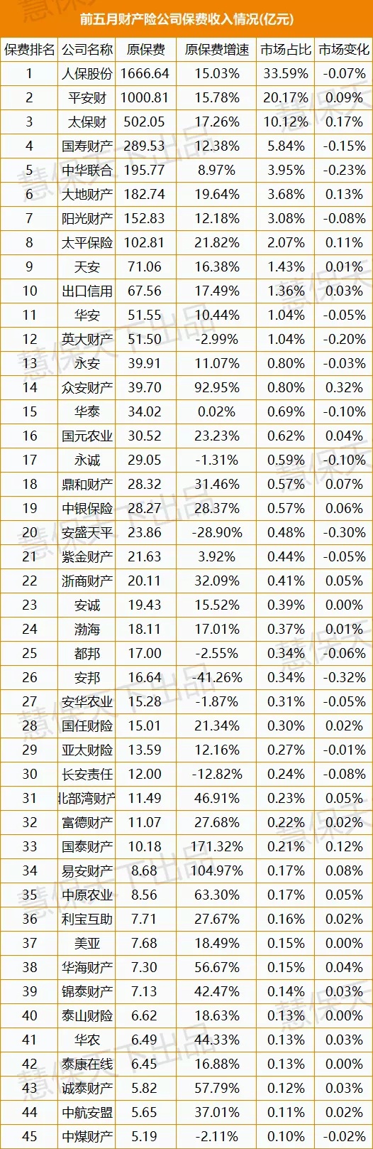 5月财险数据:整体增长放缓,太保增速超越人保、平安行业动态