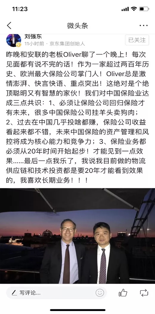 其实细看2018年的刘强东针对保险业的讲话套路也大致相仿:
