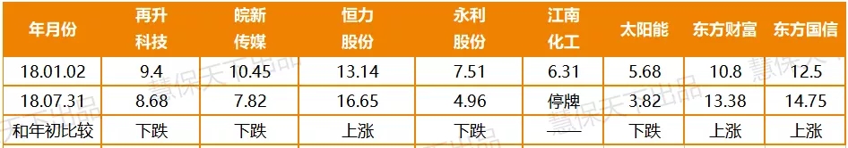 某中型寿险公司2018年新入股票1月2日与7月31日股价比较(元)