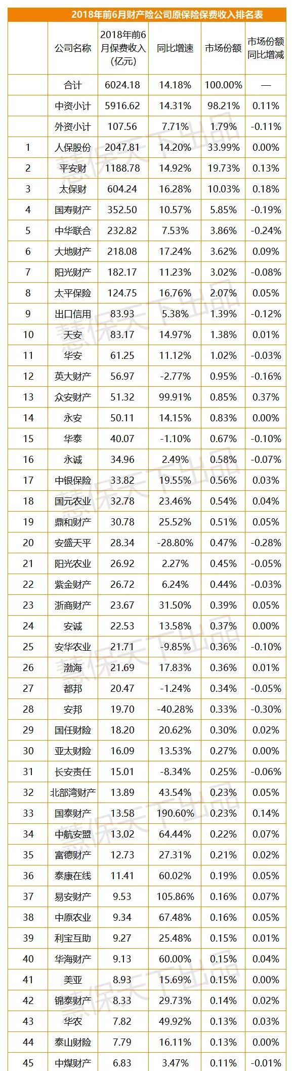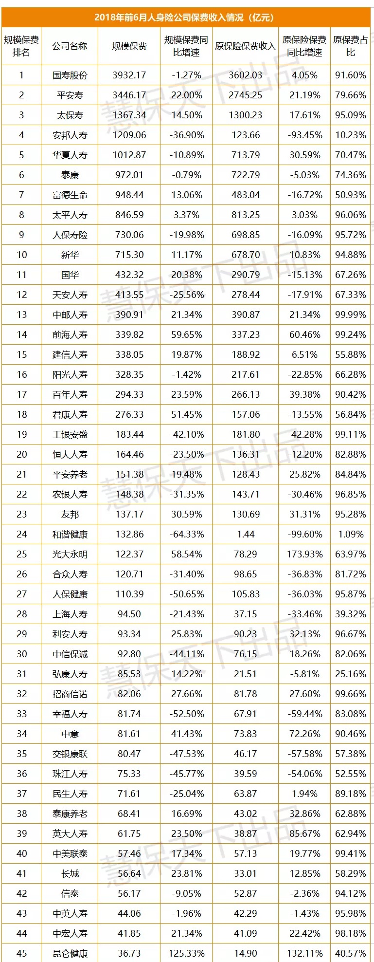 都说艰难的2018上半年成绩究竟如何:13家财险、近四成寿险公司保费负增长行业动态