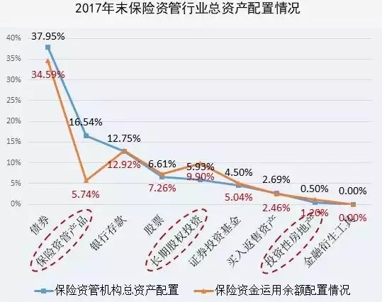 保险资管机构如何运用如此大规模的资金呢?根据脉络图,保险资管机构的总资产配置中,债券及保险资管产品占比最高,合计占比过半;而长期股权投资、投资型房地产相对较低,占总资产比例分别为5.93%、0.5%。