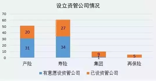 与此同时,保险资管机构的扩张趋势明显。一方面,保险资管机构的从业人数正在快速扩张。2017年,行业人数增长率为15.75%,远超行业规模的增长率7.18%;另一方面,有77%的保险公司已经成立或有意愿成立保险资管公司,其中,有66家保险公司有意愿设立保险资管公司。