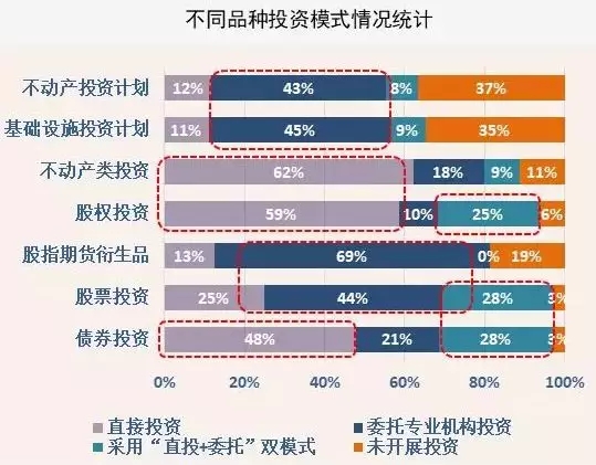 同时,对于不动产、股权和债券的投资,保险公司选择自己直接投资的比例较高,而对于股指期货衍生品、股票、基础设施投资等,保险公司大多选择委拖专业投资机构。