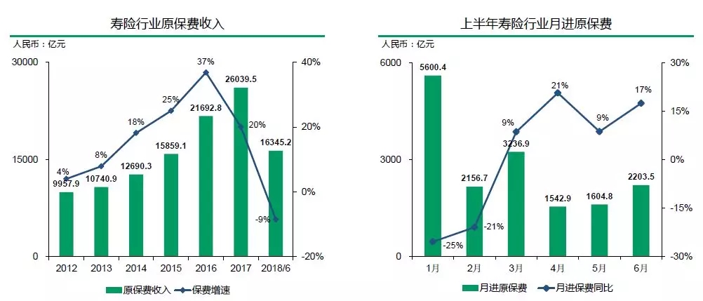 2018年人身险行业重度转型,保费负增长阴云不散。银保监会发布的数据显示,人身险行业原保险保费负增长的态势虽然逐月改善,但上半年依然录得8.5%的负增长。