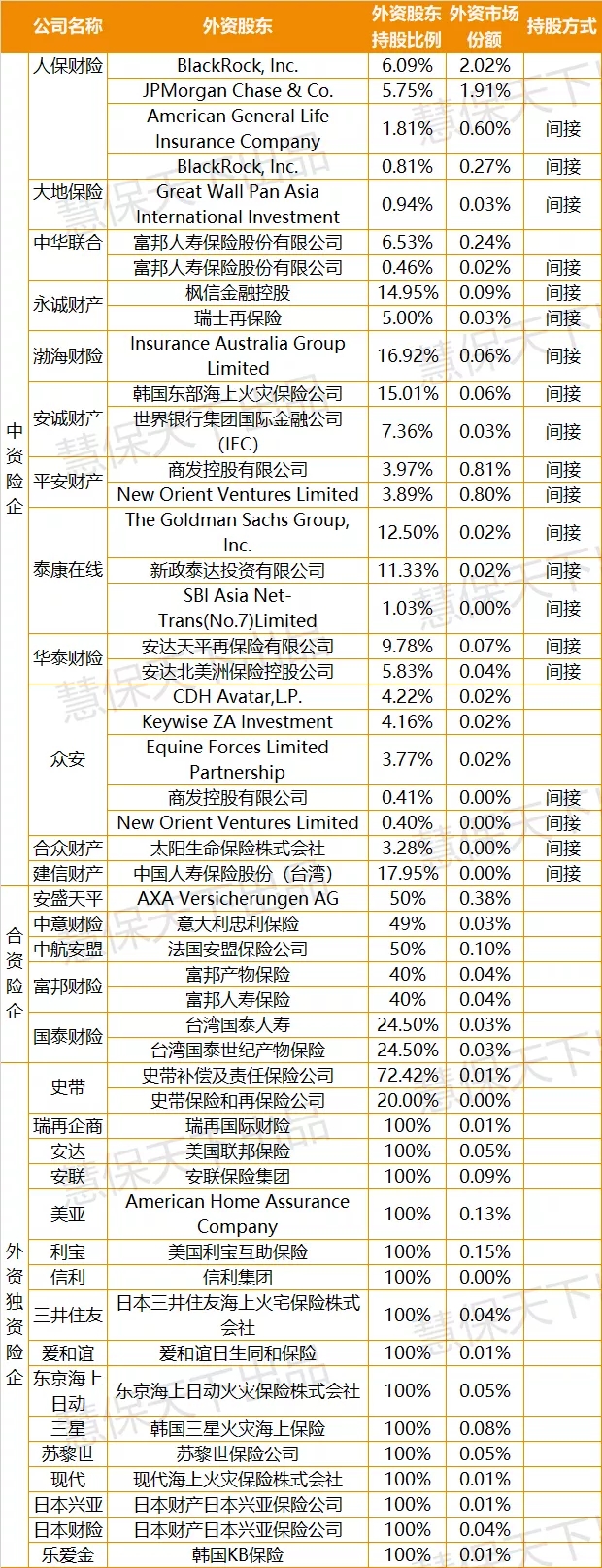 外资股东全搜罗:隐身中资险企,财险、寿险市场份额双双接近10%行业动态